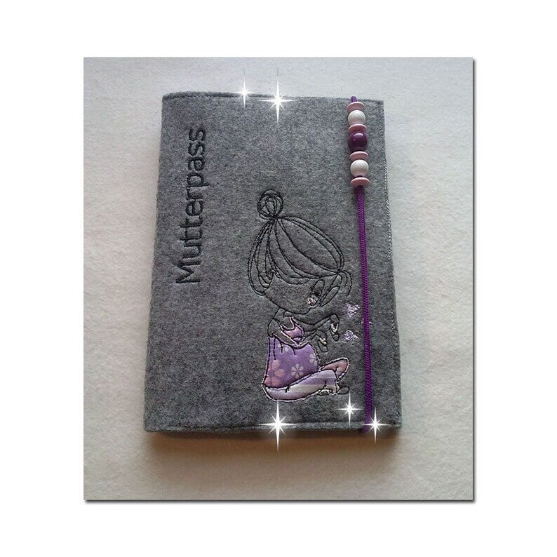 Die Hülle ist mit einer schönen Stickerei versehen und wird mit einer Gummikordel verschlossen, welches mit farblich passenden Perlen verschönert ist.