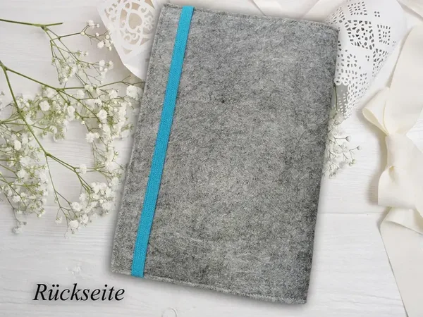 Geschlossen wir die Hülle rückseitig mit einem Gummiband.